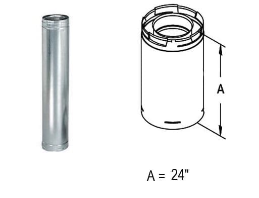 DuraVent 58DVA-24 DirectVent Pro Galvanized steel pipe length is designed for appliances approved for direct venting, this 5" x 8" - 24 " pipe ensures optimal performance. Featuring twist-lock construction, no sealant required (unless specified), and installation length is easily calculated. Enjoy tight inner connections for top-notch performance, with a sleek finish and laser-welded seams for a premium look. With low-profile locks, it seamlessly fits any interior. Note: Professional installation recommended as per appliance manual and local codes.